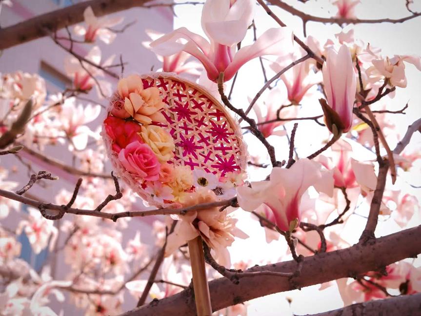 创作中,大家或循传统技法编织经典纹路,或融合艺术创意打造别致设计,相互交流技巧、分享心得,竹丝轻响与欢声笑语交织成校园里的温暖旋律。一件件稚嫩却用心的竹编团扇相继成型,每一把都是独属于创作者的非遗佳作。
