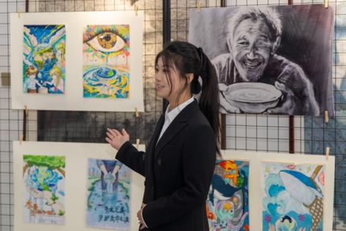 展览现场,我院师生代表结合创作心得开展志愿讲解,向观众普及滦河流域生态保护知识。参与创作的学生表示,整个创作过程让自己对水资源的珍贵有了更深切的体会,未来将继续用画笔讲好水利故事,做节水护美的践行者。